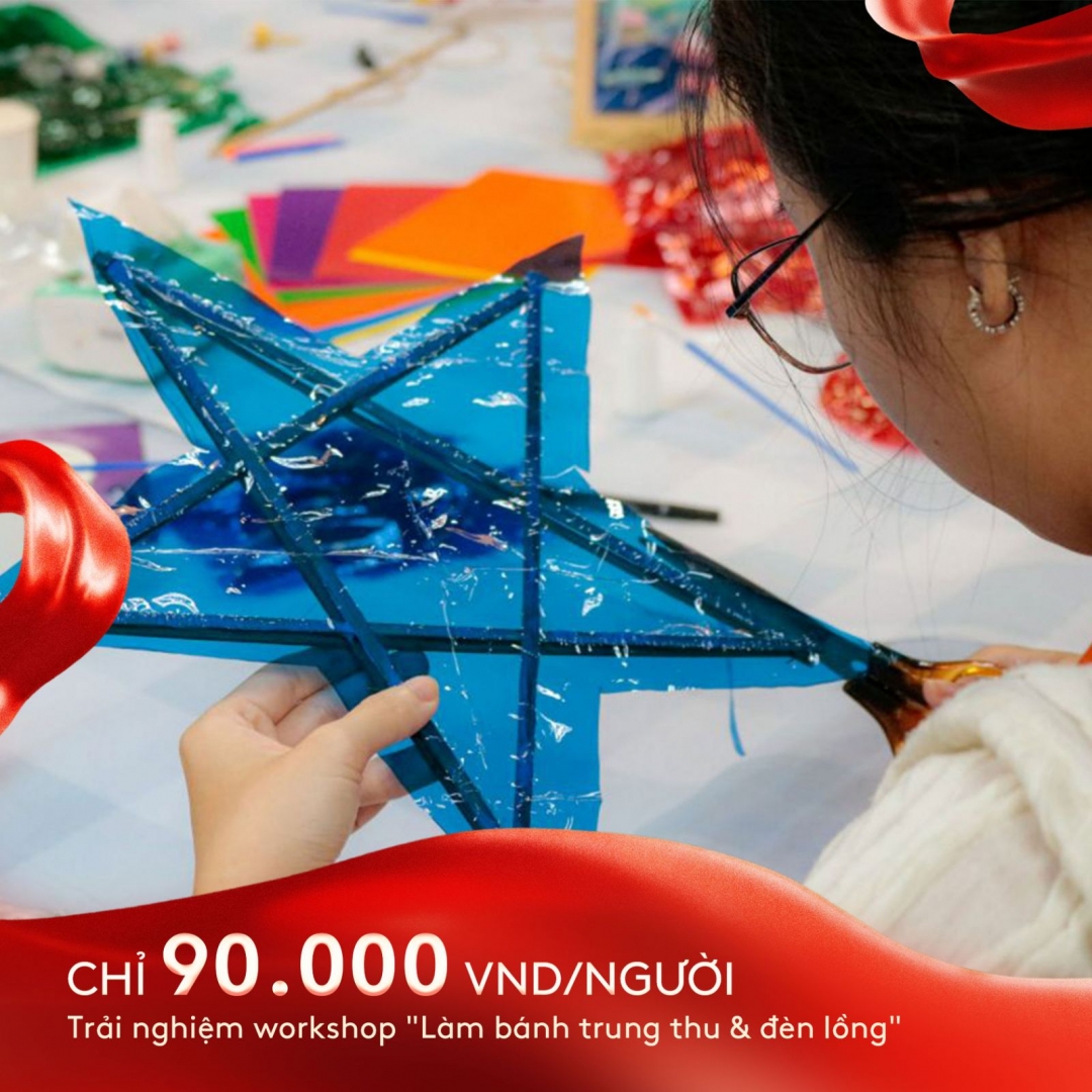- Chỉ 90.000 VND/Người: Trải nghiệm Workshop “Làm bánh trung thu & đèn lồng”, cùng đầu bếp, nghệ nhân sáng tạo ra những chiếc bánh thơm ngon, chiếc đèn lồng lung linh. Tặng kèm 01 nước thảo mộc mát lành.