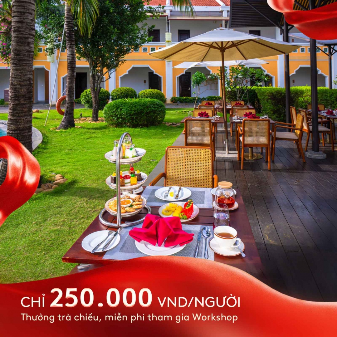 - Chỉ 250.000 VND/Người: hưởng trà chiều đẳng cấp bên không gian hồ bơi sang trọng và miễn phí tham gia workshop
